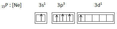 Supaya dapat membentuk 5 ikatan kovalen, maka 1 elektron dari orbital 3s harus dipromosikan ke orbital 3d. Selanjutnya orbital 3s , ketiga orbital 3p, dan 1 orbital 3d mengalami hibridisasi membentuk orbital hibrida sp3d yang berbentuk bipiramida trigonal.